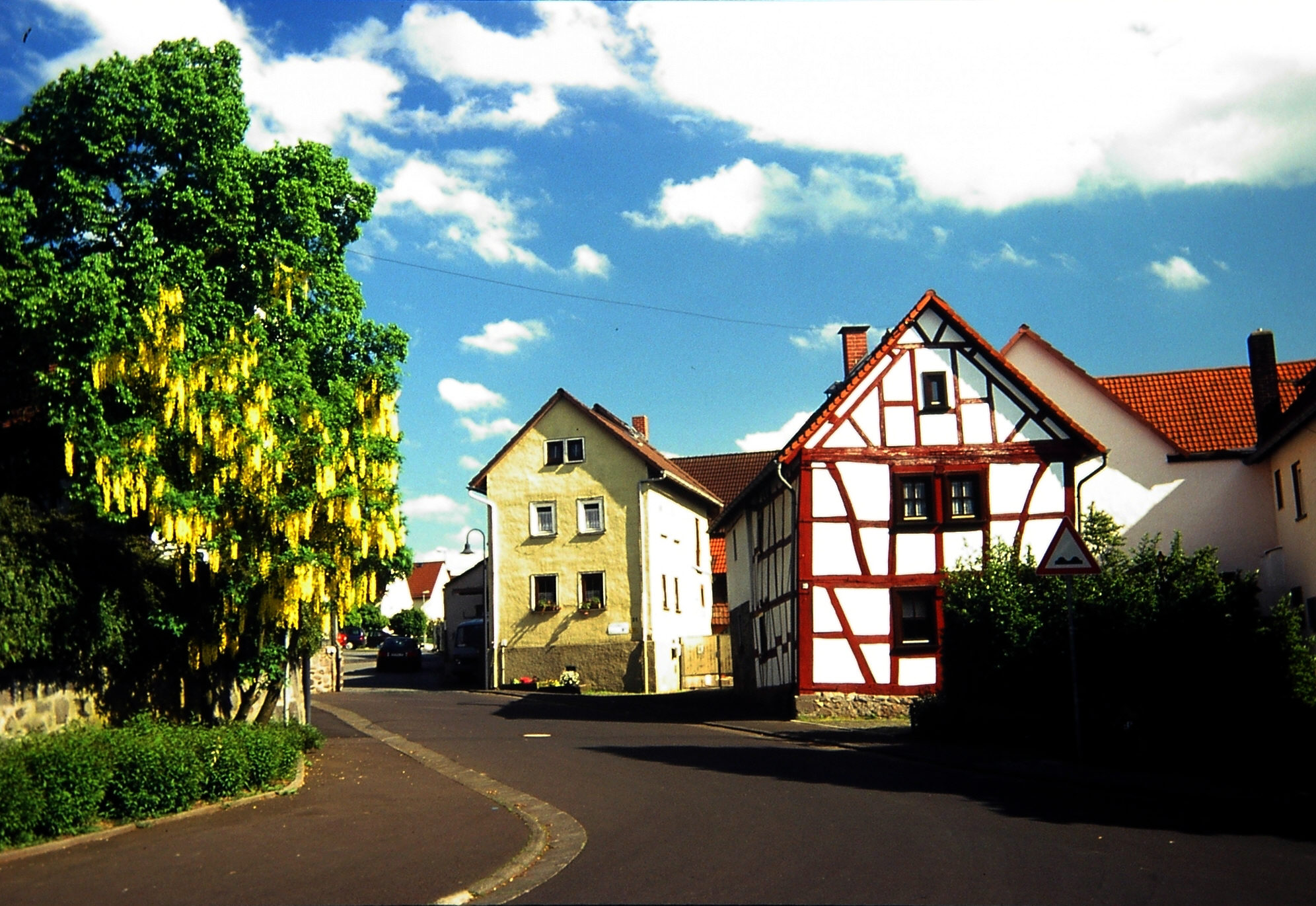 Dorfplatz vor der Kirche mit Oberdorfstraße und Heimatmuseum Hirtenhaus