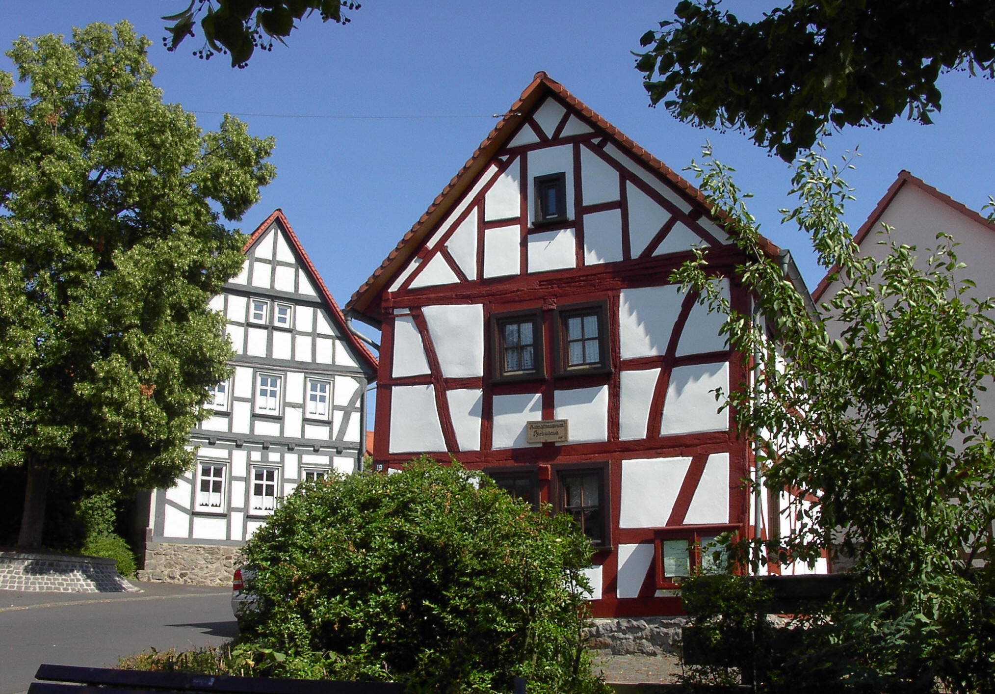 Links das alte Pfarrhaus und rechts das Heimatmuseum Hirtenhaus