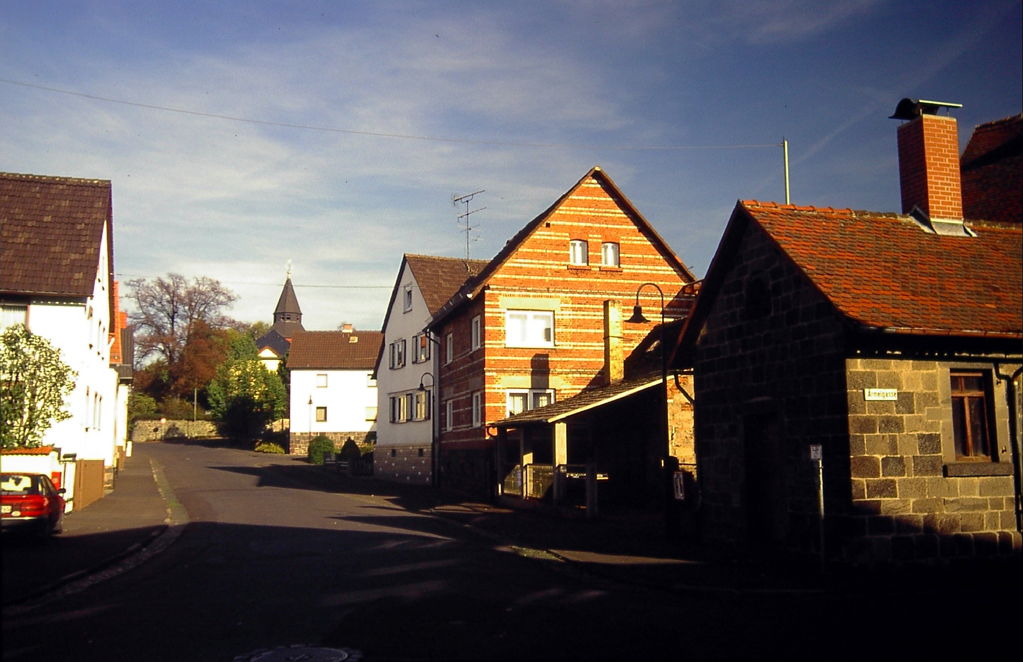 Oberdorfstraße mit Blick zur Kirche, rechts das alte Backhaus